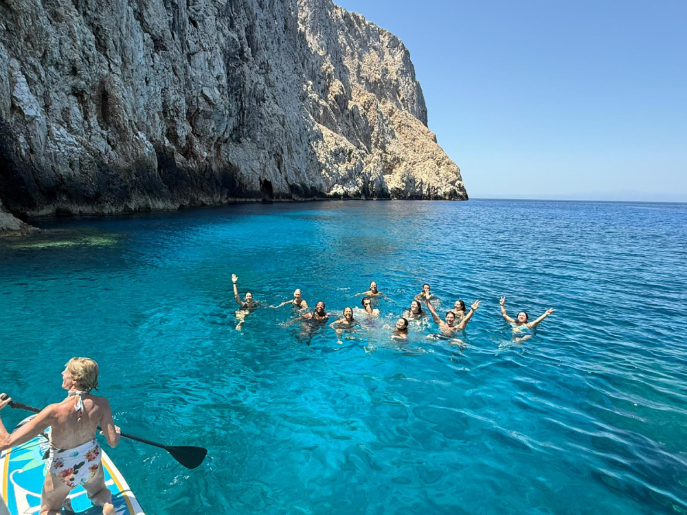 “One week on Amorgos with Mariel and Alex filled up all my cups I didn’t even know were empty. Yoga asana that cracks your soul open followed by days spent in the sweetest sea, the freshest local food washed down and surrounded by the best company. If there’s one thing you do for yourself in 2026, it has to be booking this trip.” – Emily S (xoxoxoxoxo for Alex + Mariel directly)