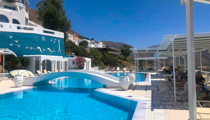 This beautifully designed, family-run hotel is nestled on the cliffs of a quiet and peaceful Greek Island. Conveniently located near the bay and within walking distance of sandy beaches. Most rooms have a simple, elegant decor and boast views of the sea. The hundreds of reviews comment that the staff is incredibly friendly, welcoming, and super helpful, and most guests leave feeling like they have made new friends. Their chefs provide healthy, gourmet meals served buffet style that incorporate fresh organic produce from their garden. They offer full services, including the spa, gym, and pools. Immerse yourself in guest rooms that embody the epitome of luxury and tranquility. Come and enjoy an authentic Greek experience.